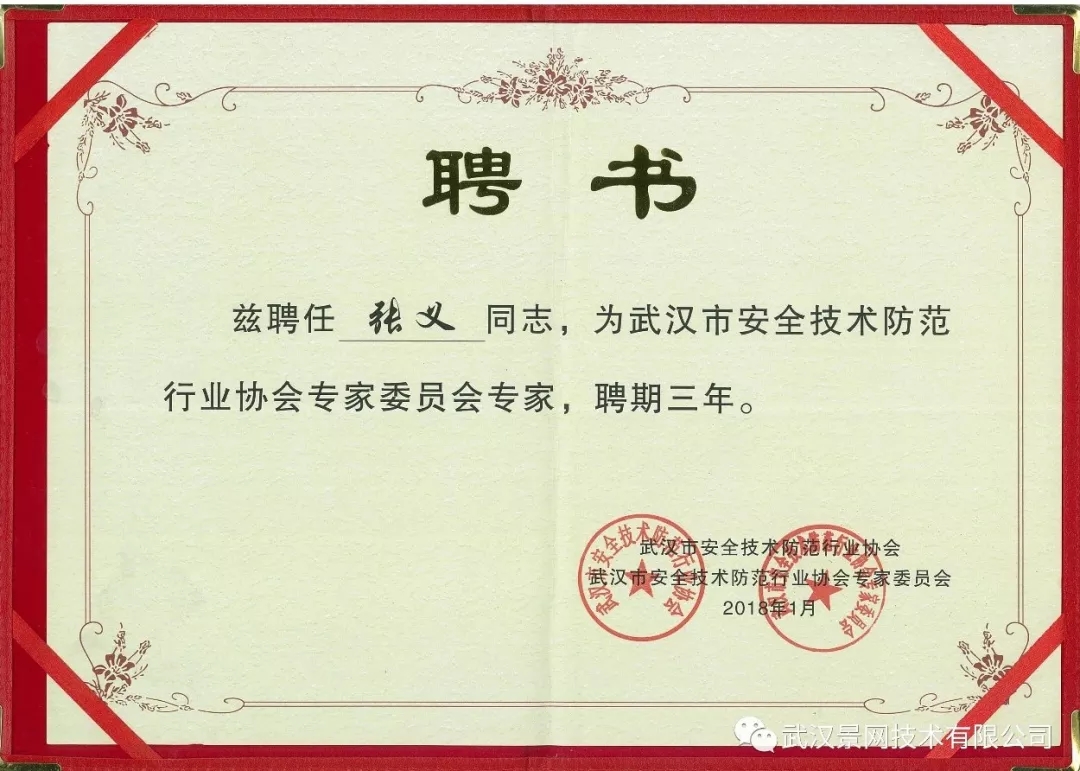 >> 景網(wǎng)張義同志榮聘為武漢市安協(xié)專家委員會(huì)專家