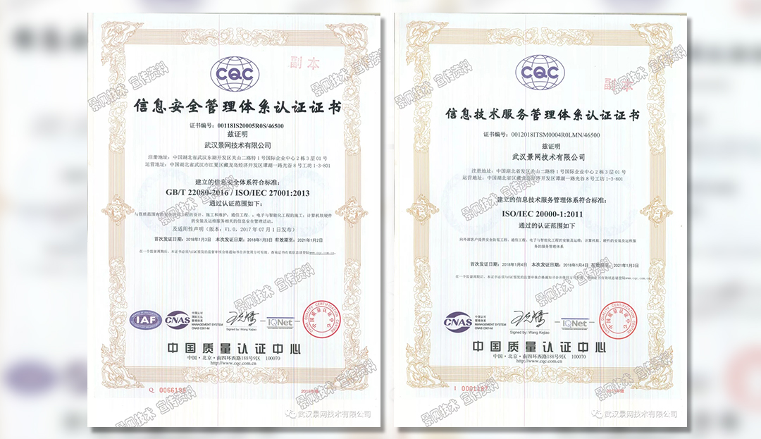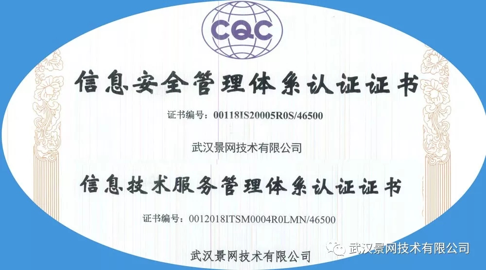 >> 景網(wǎng)公司通過(guò)信息安全.信息技術(shù)管理體系雙重認(rèn)證
