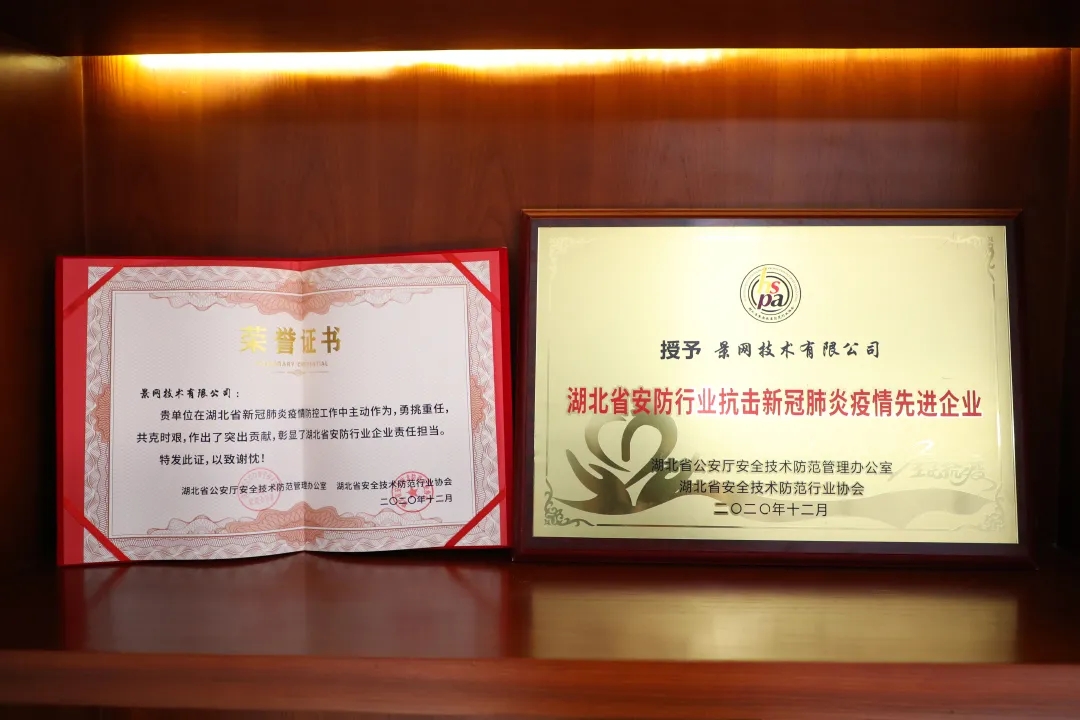 |圖片:景網(wǎng)榮獲“湖北省安防行業(yè)抗擊新冠肺炎疫情先進企業(yè)”