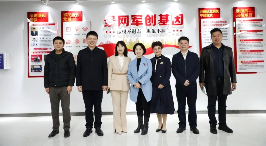宋凱帶領石會長一行參觀了景網辦公大樓,介紹了公司核心業(yè)務,產值情況,人員情況,研發(fā)投入情況。詳細介紹了景網公司的軍創(chuàng)團隊基因,軍民融合業(yè)務發(fā)展情況,軍工涉密業(yè)務發(fā)展情況。并介紹了景網黨群工作,企業(yè)文化等情況。