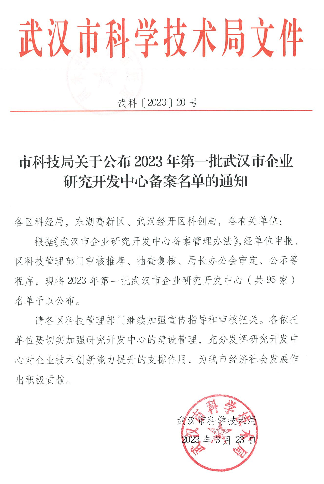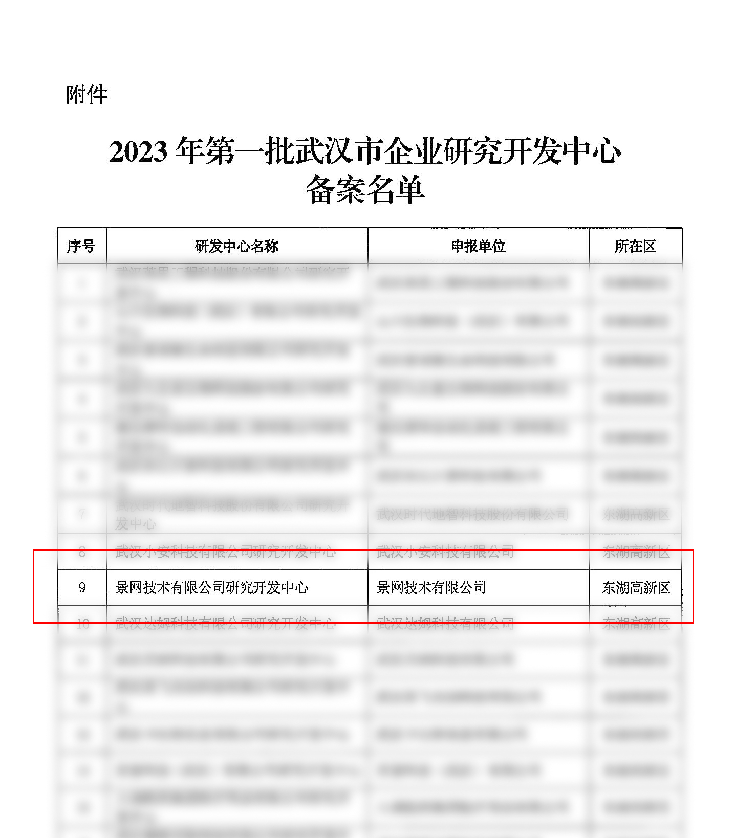 根據(jù)《武漢市企業(yè)研究開發(fā)中心備案管理辦法》,經(jīng)單位申報、區(qū)科技管理部門審核推薦、抽查復核、局長辦公會審定、公示等程序,3月23日,武漢市科技局公布了2023年第一批武漢市企業(yè)研究開發(fā)中心備案名單,全市95家單位獲批,景網(wǎng)公司研究開發(fā)中心榮幸在列。
