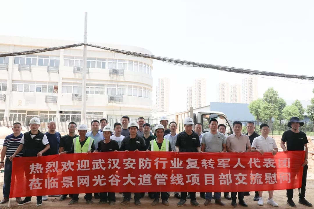 座談會結(jié)束后,全體復(fù)轉(zhuǎn)軍人代表前往景網(wǎng)光谷大道管線項目部參觀,并為景網(wǎng)一線施工人員送去清涼慰問。當(dāng)天室外最高溫度在38-40℃左右,驕陽似火,熱浪如涌。在這樣的“桑拿天”里,景網(wǎng)人戰(zhàn)高溫斗酷暑,始終堅守在自己的崗位,辛苦工作,默默奉獻(xiàn)。在場的復(fù)轉(zhuǎn)軍人代表紛紛對一線人員的工作精神,表示欽佩。