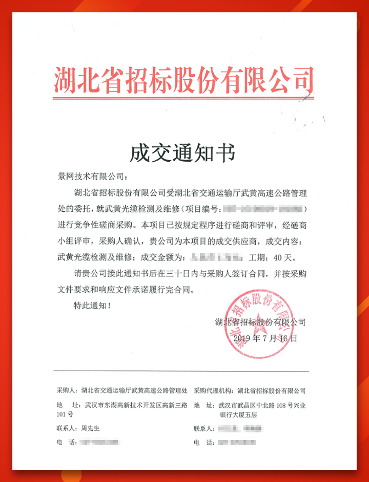 景網(wǎng)順利中標(biāo)湖北省交通運(yùn)輸廳武黃高速公路光纜維護(hù)項目