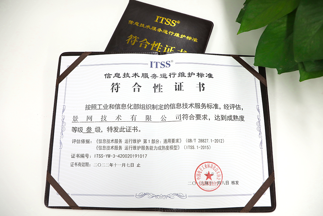 此次景網(wǎng)取得ITSS符合性證書,標(biāo)志著我司在信息技術(shù)運(yùn)維能力管理方面更加規(guī)范化、標(biāo)準(zhǔn)化。今后,景網(wǎng)會(huì)以優(yōu)質(zhì)的運(yùn)維服務(wù)質(zhì)量和完善的運(yùn)維服務(wù)體系,致力于用更高效可靠的運(yùn)維服務(wù),為客戶創(chuàng)造更多價(jià)值,幫助客戶確保網(wǎng)絡(luò)和數(shù)據(jù)的安全暢通。