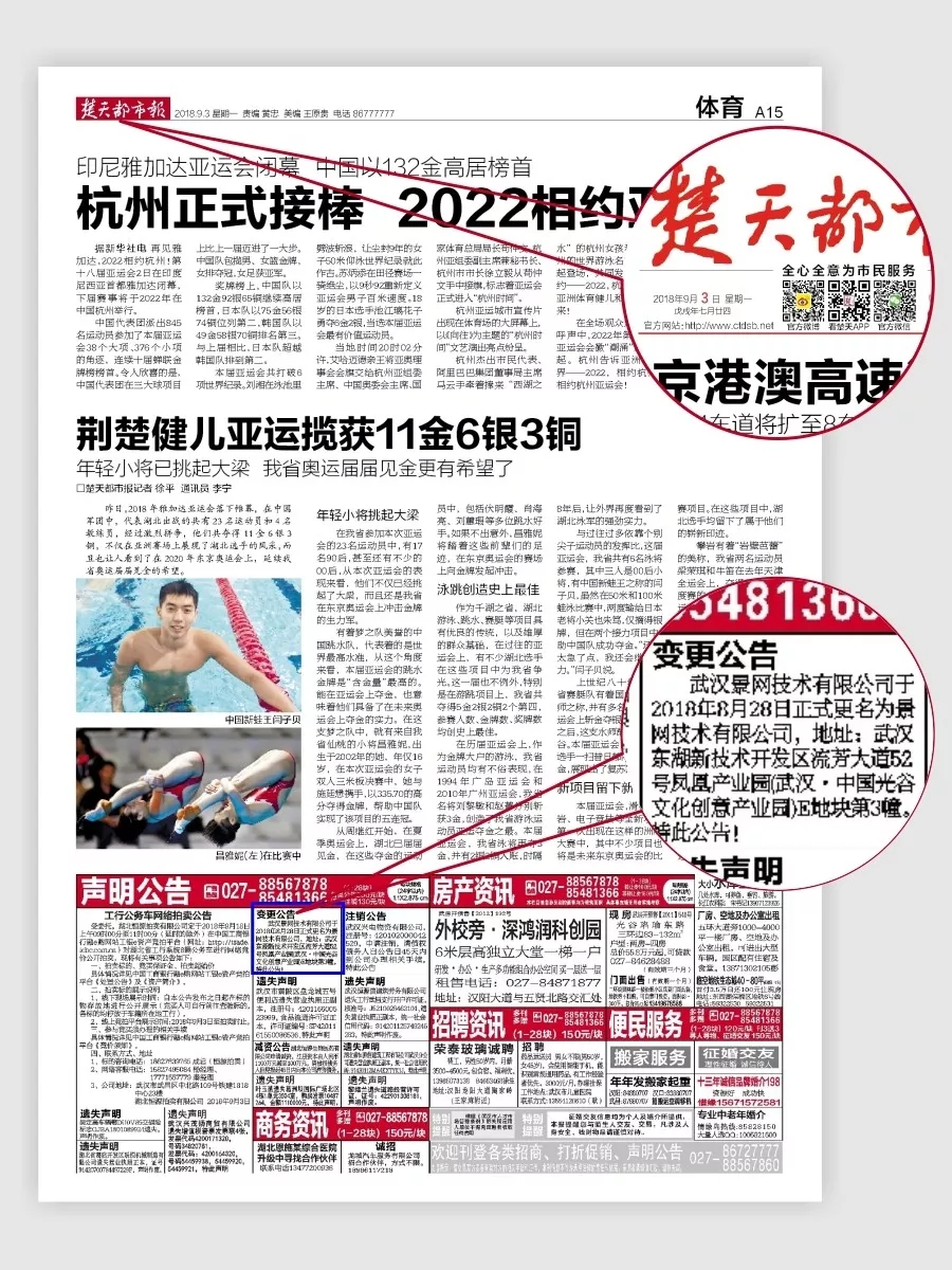 |圖片1:9月3日,楚天都市報(bào)已刊登變更公告