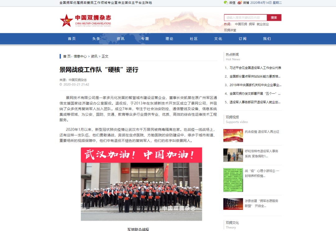 >> 《中國雙擁》月刊專訪報道景網(wǎng)事跡