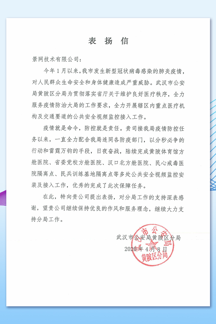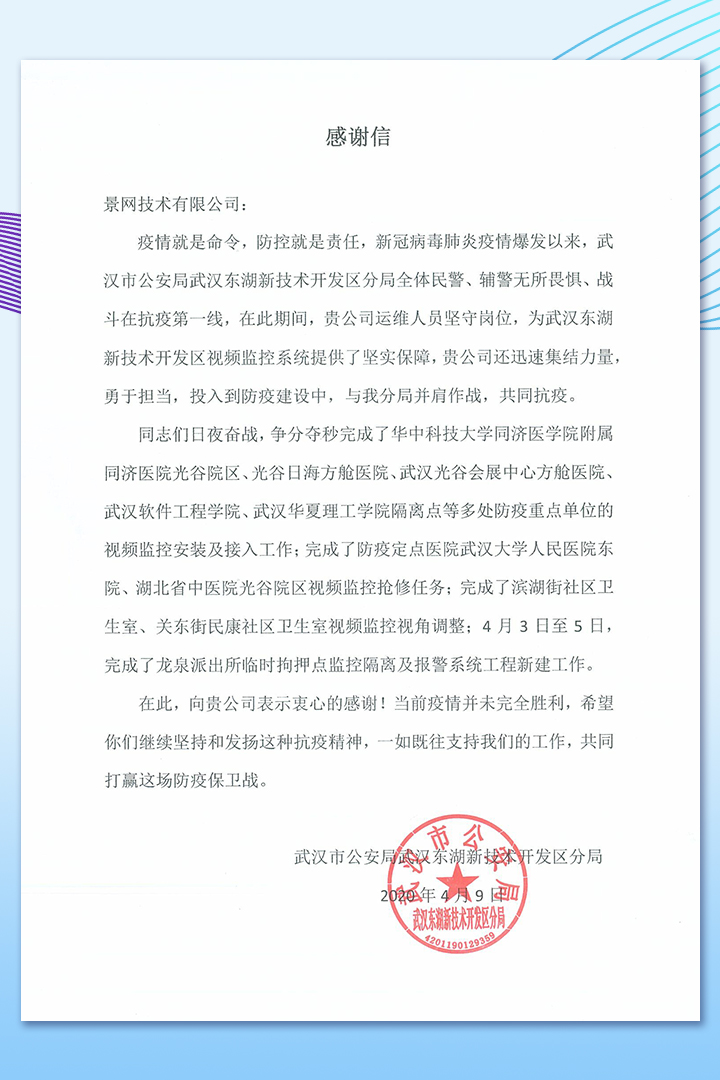 各地公安機(jī)關(guān)及行業(yè)客戶發(fā)來景網(wǎng)戰(zhàn)疫感謝信