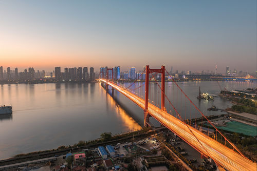 武漢鸚鵡洲長江大橋是湖北省武漢市長江上第八座長江大橋,大橋位于武漢長江大橋上游2.3公里,距離楊泗港長江大橋3.2公里,其中正橋全場3.42公里,橋面寬38米。正橋布置雙向8車道,設計行車速度為60公里/小時。