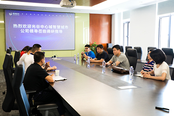 2020年7月9日上午,武漢光谷中心城智慧城市建設投資管理有限公司總經(jīng)理張寧,武漢光谷中心城國信強智慧路燈建設運營管理有限公司董事長朱軍等一行蒞臨景網(wǎng)公司交流指導工作,景網(wǎng)董事長宋凱、總經(jīng)理王中月、運維總監(jiān)陳志