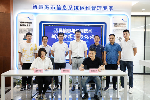 2020年8月3日,在景網(wǎng)技術公司總部大樓,武漢邁異信息科技有限公司和景網(wǎng)技術有限公司舉行了戰(zhàn)略合作簽約儀式。邁異董事長兼總裁潘成林、景網(wǎng)董事長宋凱出席簽約儀式,邁異信息副總裁兼MCS云中心總裁蘭于蘭,景網(wǎng)總經(jīng)理王
